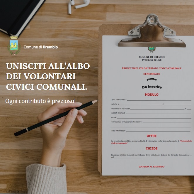 Il Comune di Brembio cerca persone volenterose per contribuire attivamente alla vita della comunità. Se hai tempo e voglia di fare la differenza, ci sono tante attività in cui puoi essere coinvolto/a: