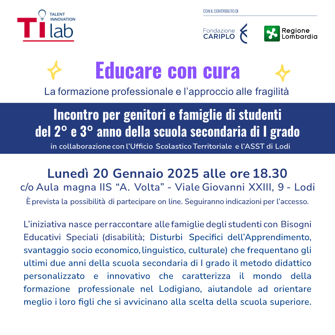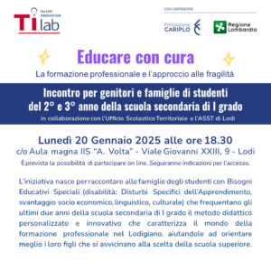 👨👩👧👦 Educare con cura è l’incontro dedicato alle famiglie degli studenti con Bisogni Educativi Speciali che frequentano gli ultimi anni delle scuole medie.