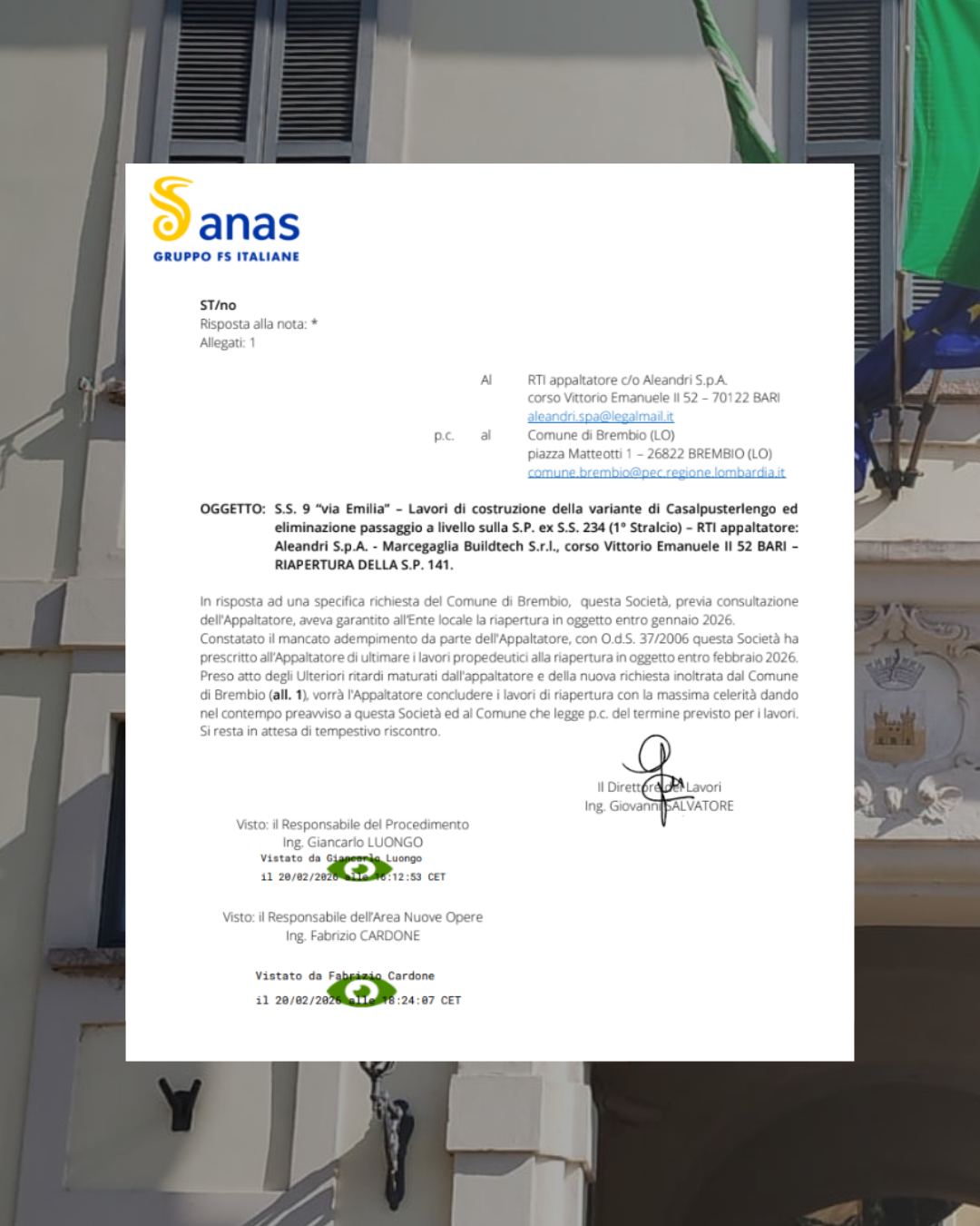 📌 Poiché la riapertura prevista per gennaio 2026 non è stata rispettata, Anas ha ordinato all’Appaltatore di completare i lavori entro febbraio 2026.